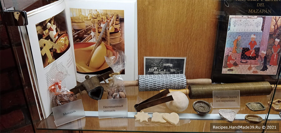 Ах да! Самое главное – чем же кёнигсбергский марципан отличается от всех остальных? Как известно, марципан – это измельчённый в муку сладкий миндаль, сахарный сироп (или сахарная пудра) и магия… Так вот настоящий кёнигсбергский марципан во время магического ритуала особым образом запекают (прожаривают) до образования золотистой поверхности. Кроме более тёмного цвета фирменной фишкой кёнигсбергского марципана считается особый аромат и тончайшая горчинка, которые даёт горький миндаль.