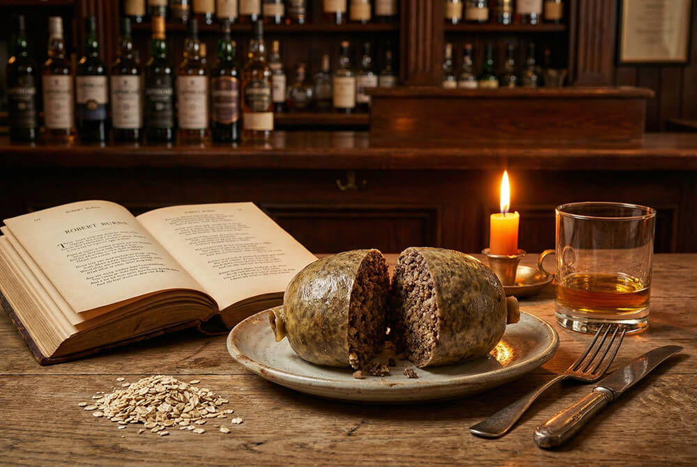 Каждый год 25 января шотландцы (и те, кто хочет ими побыть хотя бы один вечер) отмечают день рождения своего главного поэта – Роберта Бёрнса. Но это не скучные литературные чтения в библиотеке. Это шумное, весёлое и очень сытное торжество, где главным героем наравне с поэтом выступает «хаггис» – легендарное блюдо из бараньих потрохов, овсянки и специй.