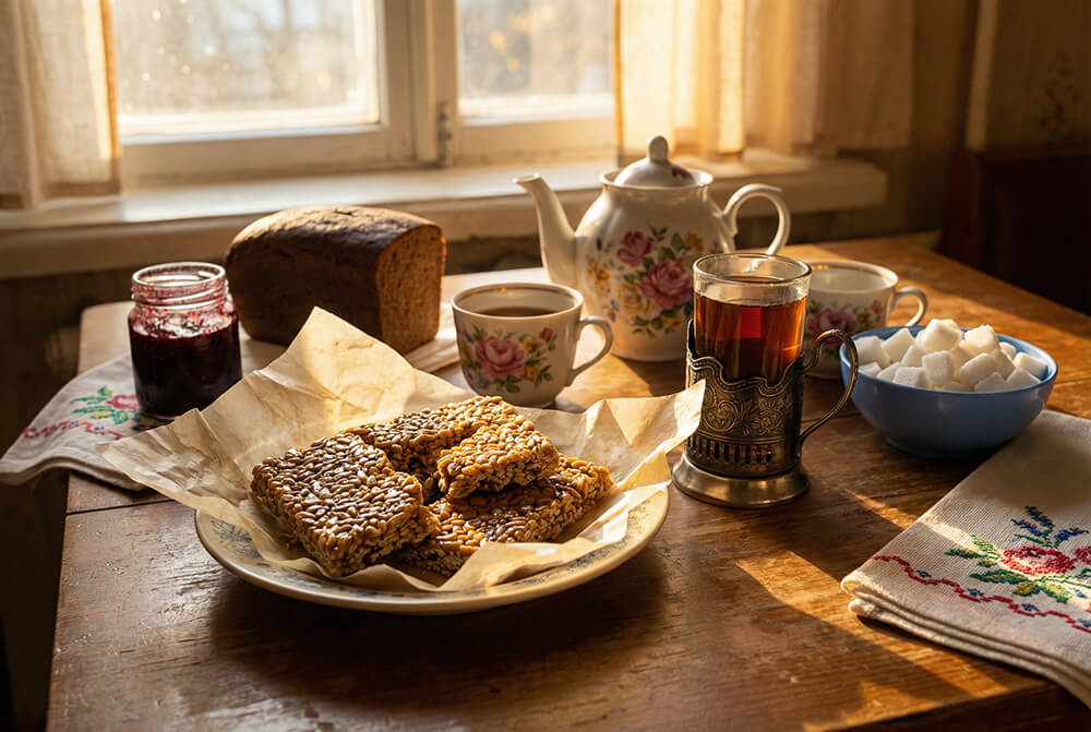 Это было настоящее испытание и наслаждение одновременно. Мы отламывали кусочки, стараясь не повредить зубы, а во рту этот твердый монолит постепенно таял, раскрываясь вкусом жареных семечек и жжёного сахара. Иногда мамы делали домашнюю версию: смешивали обжаренный «Геркулес» или детскую смесь с ирисками и сливочным маслом, формируя «колбаски» или брикеты. Эти самодельные сладости, завернутые в фольгу, мы брали с собой на каток или в школу, даже не подозревая, что едим прототип модного фитнес-батончика.