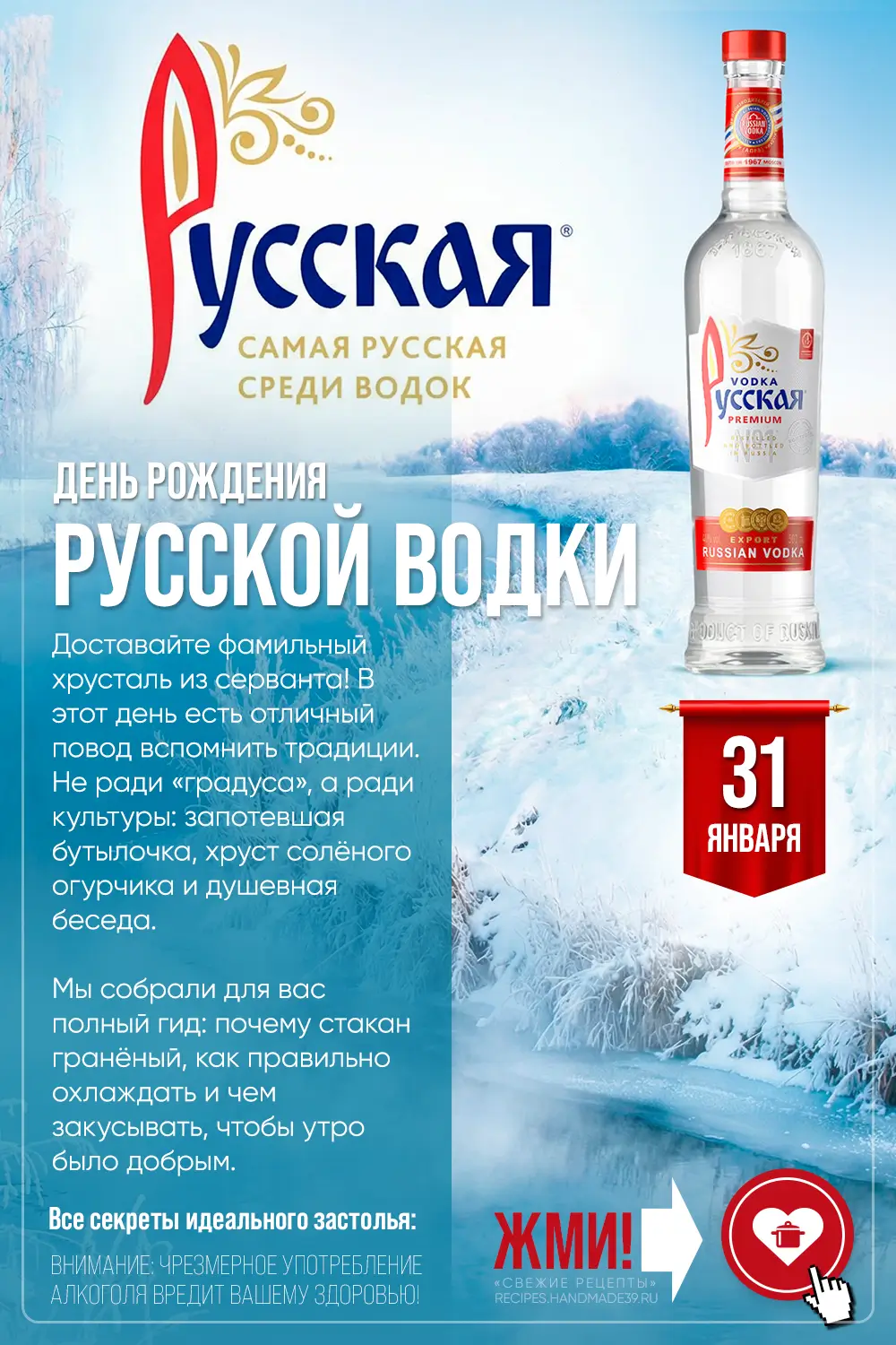 Ежегодно в конце первого месяца года энтузиасты гастрономии поднимают ледяные стопки, ведь 31 января считается знаковой датой в истории отечественного винокурения. Именно этот день календаря негласно закрепил за собой статус праздника, известного как День рождения русской водки, хотя сам Дмитрий Менделеев в 1865 году лишь защитил научный труд о соединении спирта с водой, а не патентовал новый алкогольный бренд.