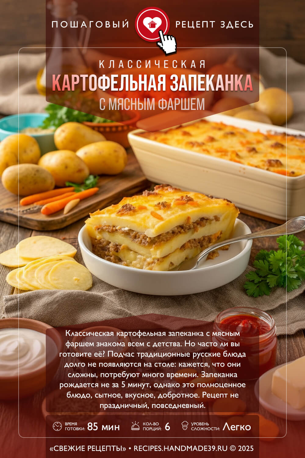 Классическая картофельная запеканка с мясным фаршем знакома всем с детства. Но часто ли вы готовите её? Подчас традиционные русские блюда долго не появляются на столе: кажется, что они сложны, потребуют много времени.