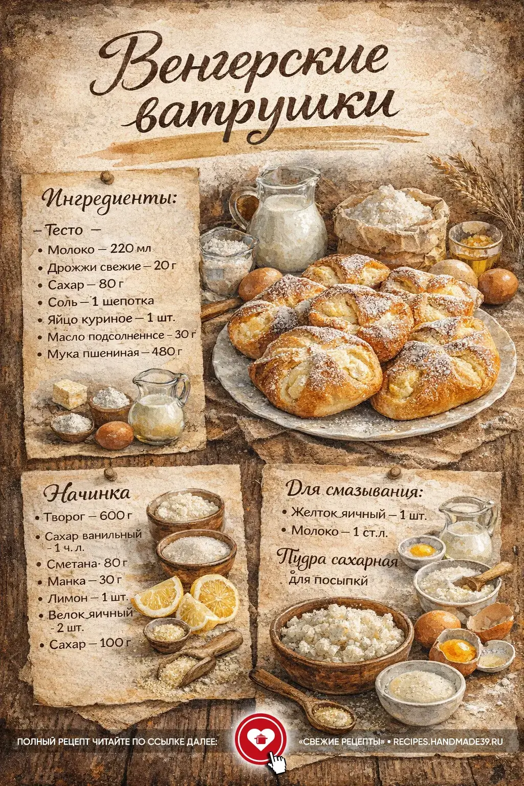 Венгерские ватрушки – гармоничное сочетание мякиша и творожной начинки с тонким лимонным ароматом