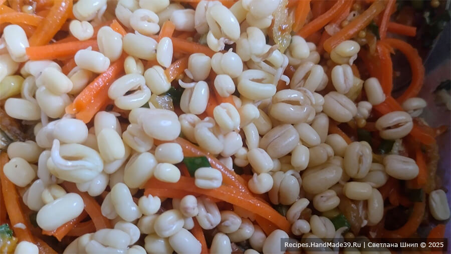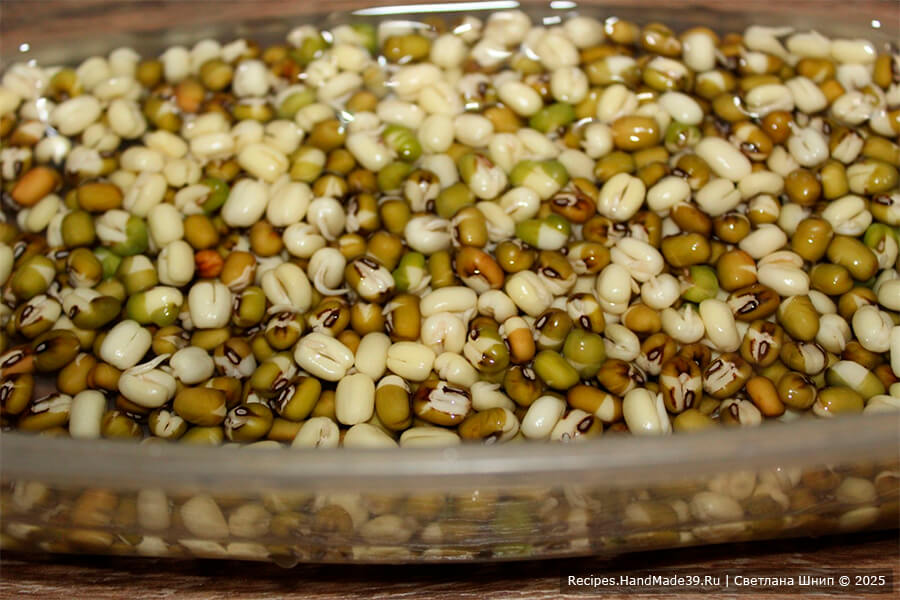 Готовится блюдо просто и быстро, только надо заранее позаботиться о пророщенном маше. Маш проращивается из расчёта 50 г сухого продукта на одного человека.