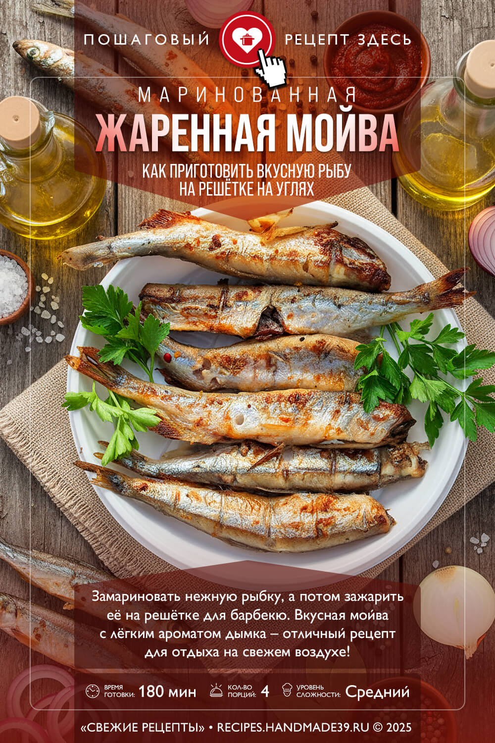 Видео рецепт «Маринованная мойва, жаренная на углях»